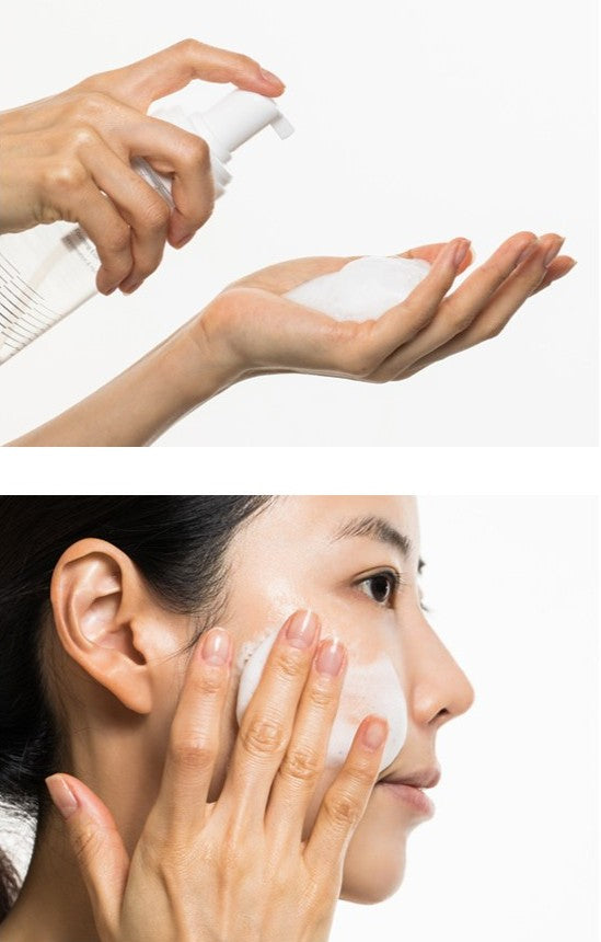 After cleansing, to refine skin texture, pump the appropriate amount of Nouvelle Cell Foaming Essence into your hands.